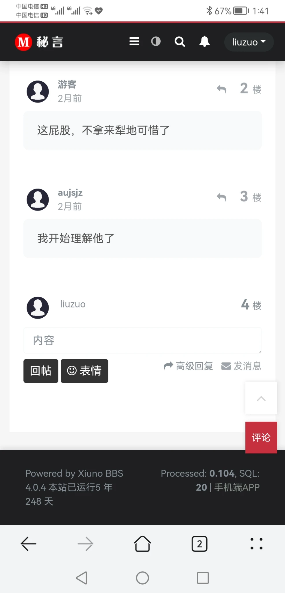 翻了翻帖子,发现xiuno有3个后续的开发版本,特别是5.0和专业版4.1。一直以为这两个为一个作者...