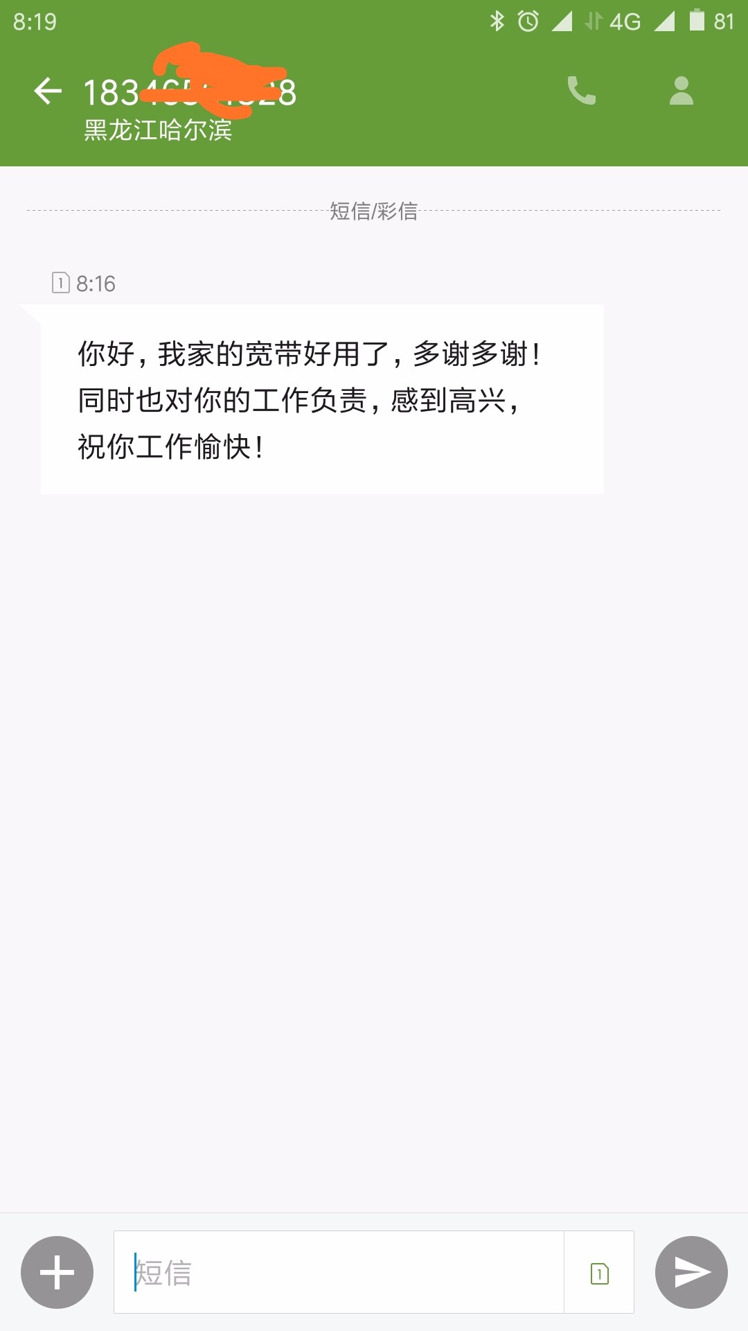 早上收到一条短信
